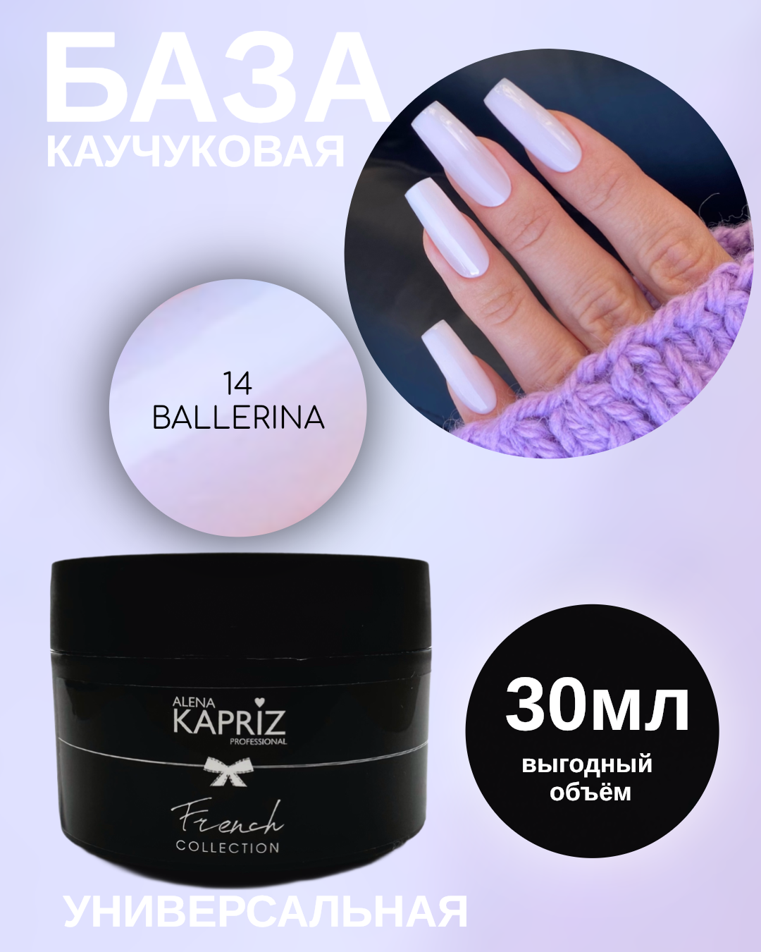 Камуфлирующая база Алёна Каприз- создана для использования в качестве маскирующего неровности цвета ногтя покрытия , а также ,как основа под маникюр с френч дизайном.