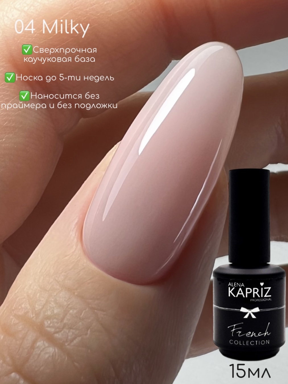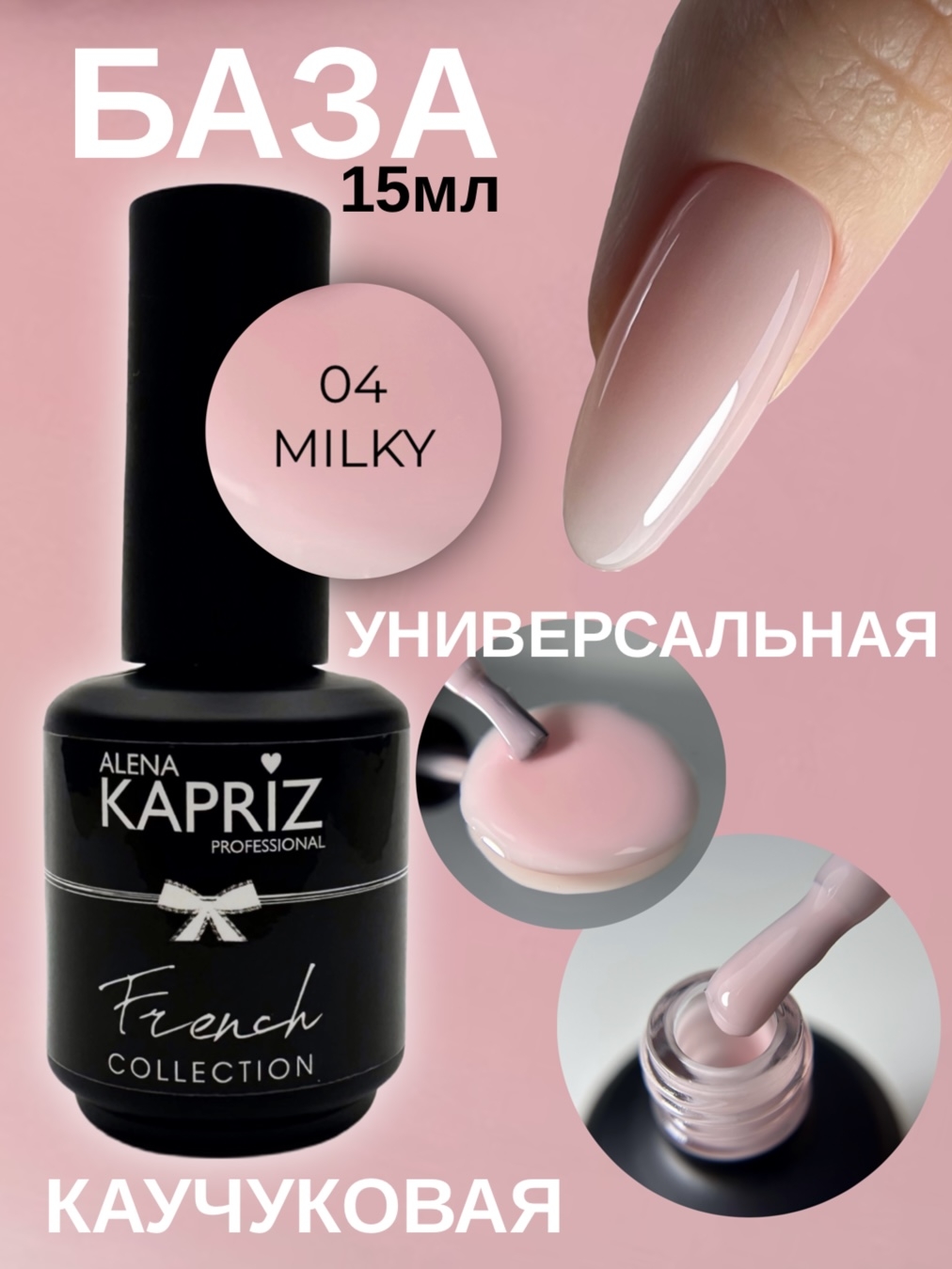 Камуфлирующая база Алёна Каприз- создана для использования в качестве маскирующего неровности цвета ногтя покрытия , а также ,как основа под маникюр с френч дизайном.