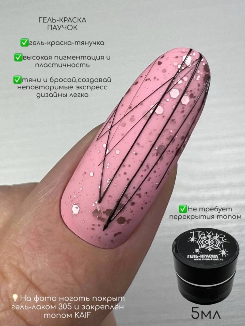 Гель-краска "ПАУЧОК" -средней вязкости, которая обладает уникальным свойством растягиваться в тонкие нити, подобно паутине. Имеет дисперсионный слой. С помощью нашей краски любой мастер сможет создать четкие геометрические линии, не обладая навыками рисования. Краска не растекается, очень экономична в использовании. Может использоваться перед топовым покрытием или после него. Перед применением рекомендуем перемешать. 5 мл.