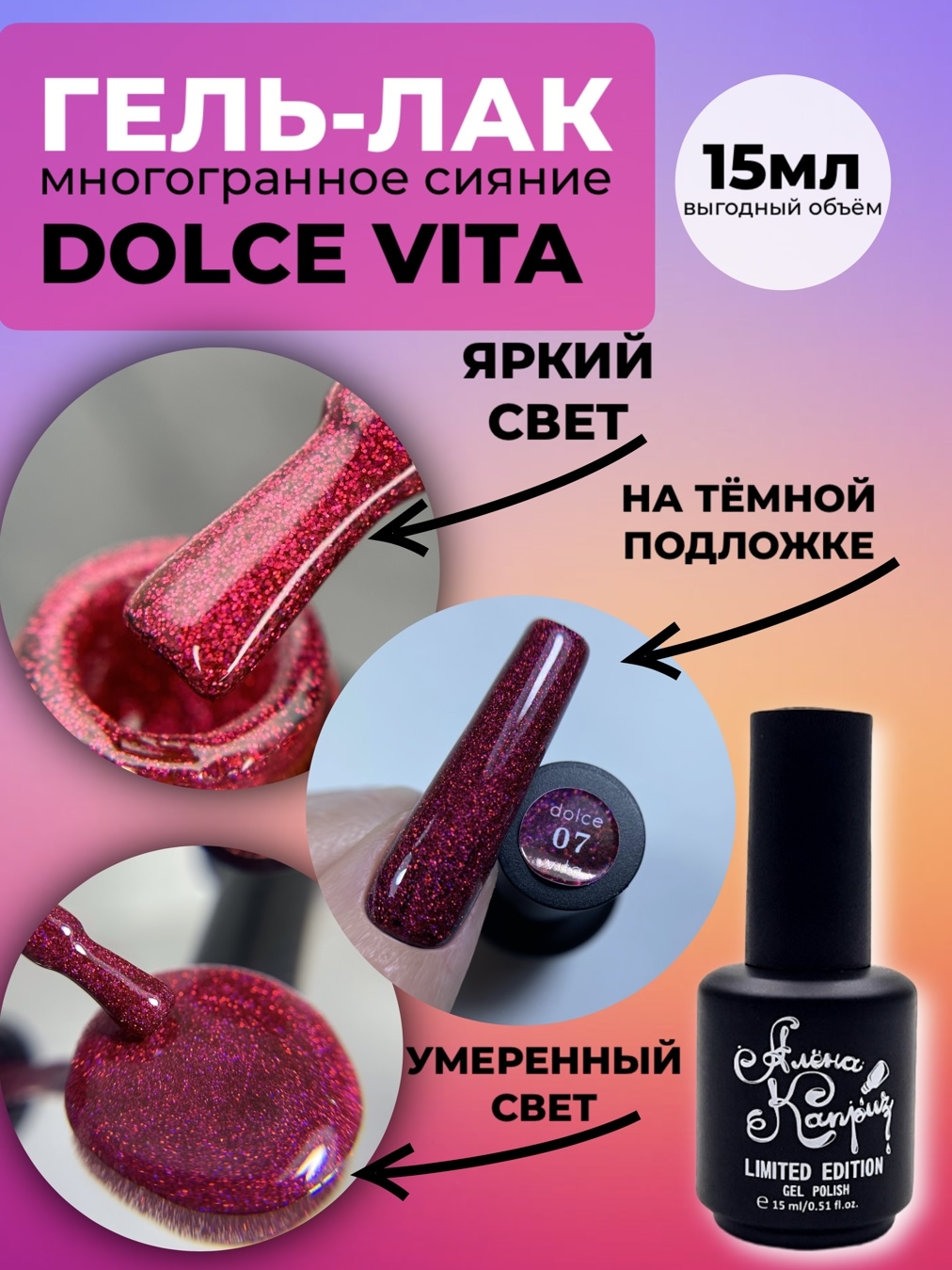 Гель-лаки ТМ Алёна Каприз-состоят из качественных бельгийских компонентов, не имеют резкого запаха и не вызывают аллергию, продукция имеет сертификат качества.