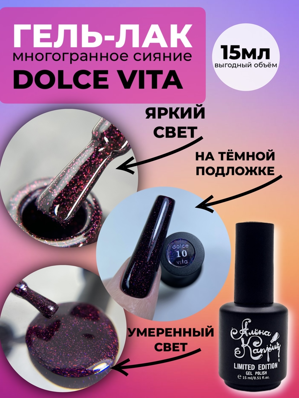 Гель-лаки ТМ Алёна Каприз-состоят из качественных бельгийских компонентов, не имеют резкого запаха и не вызывают аллергию, продукция имеет сертификат качества.