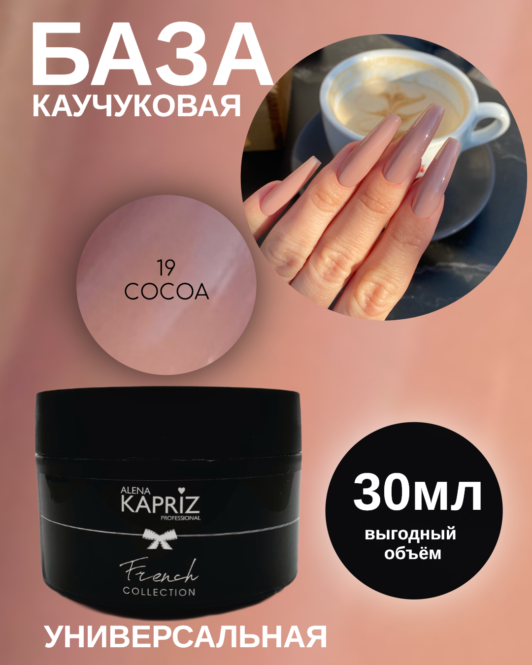 Камуфлирующая база Алёна Каприз- создана для использования в качестве маскирующего неровности цвета ногтя покрытия , а также ,как основа под маникюр с френч дизайном.