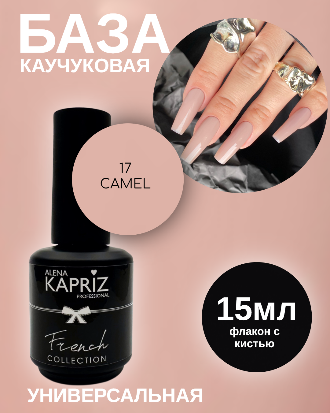 Камуфлирующая база Алёна Каприз- создана для использования в качестве маскирующего неровности цвета ногтя покрытия , а также ,как основа под маникюр с френч дизайном.