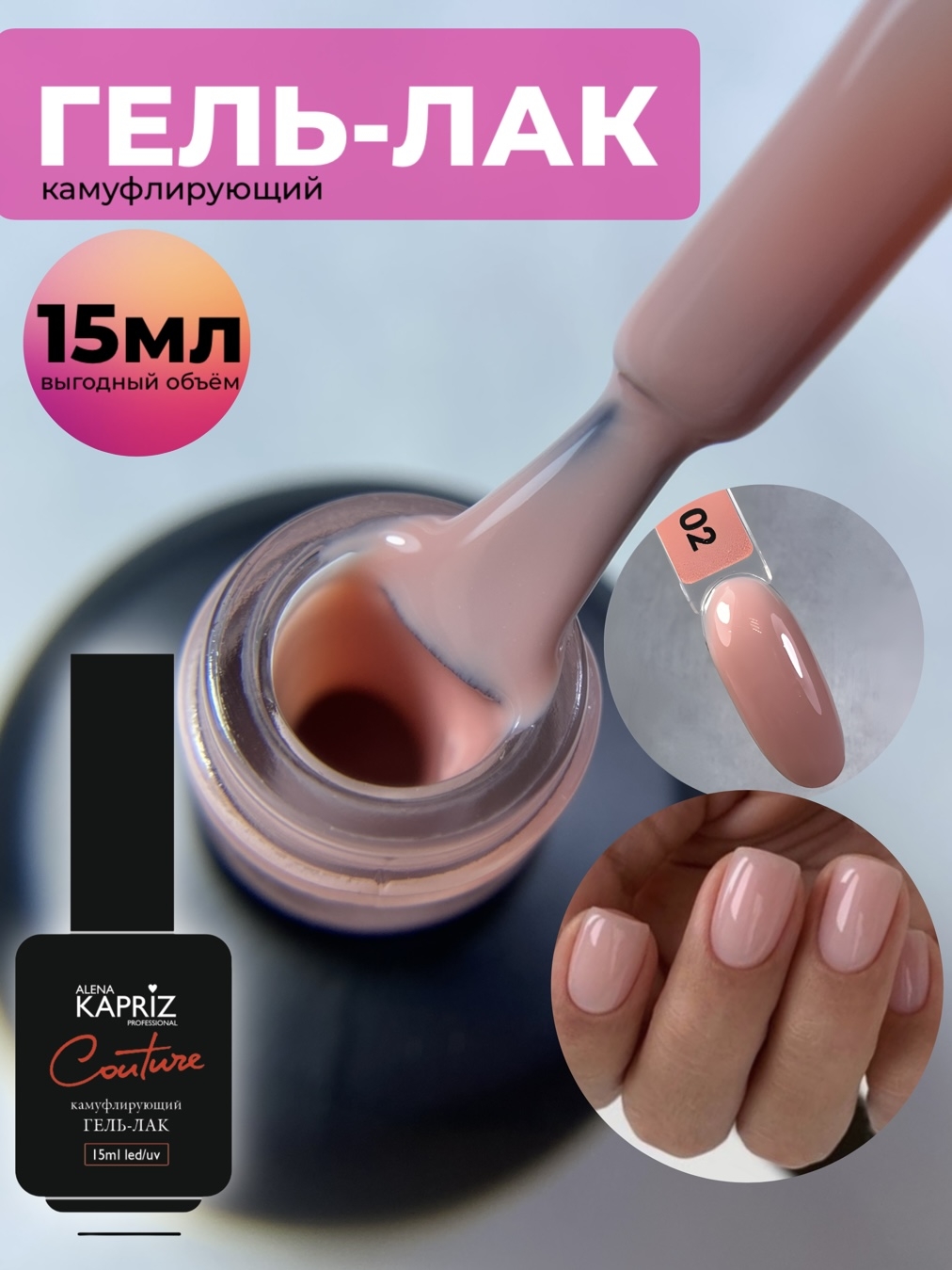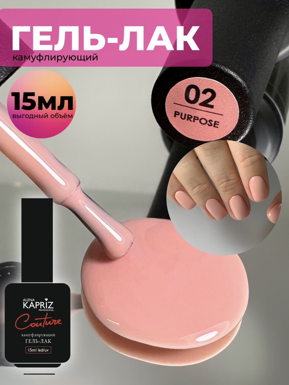 Камуфлирующий гель-лак "COUTURE" 02 PURPOSE, 15 мл
