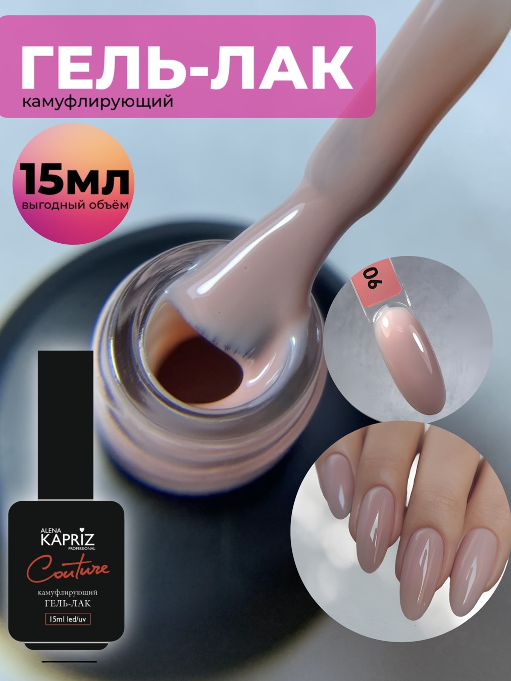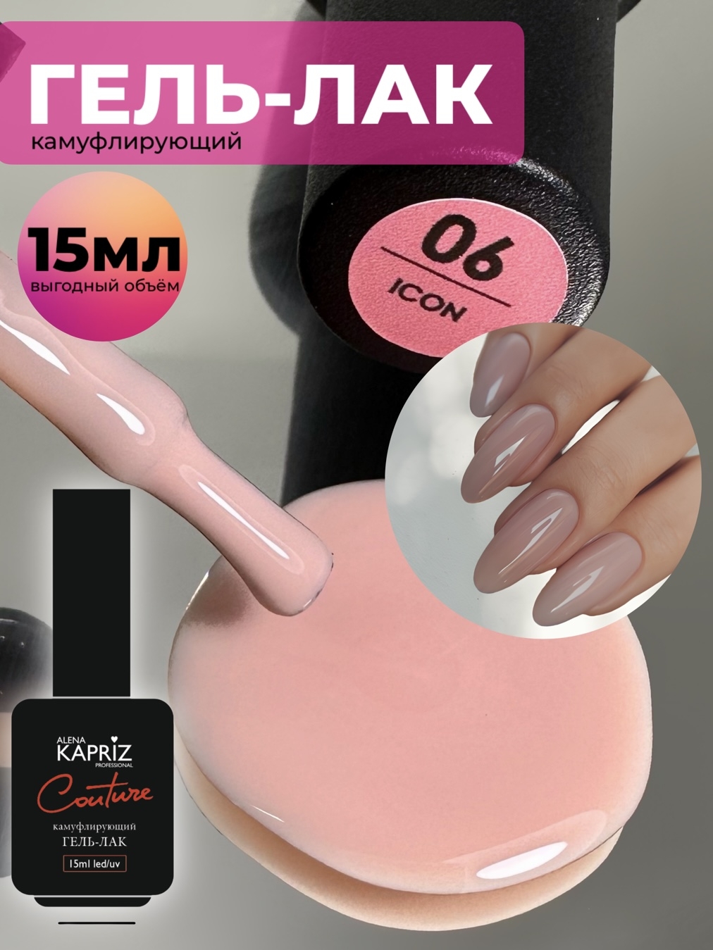 Камуфлирующий гель-лак "COUTURE" 06 ICON, 15 мл