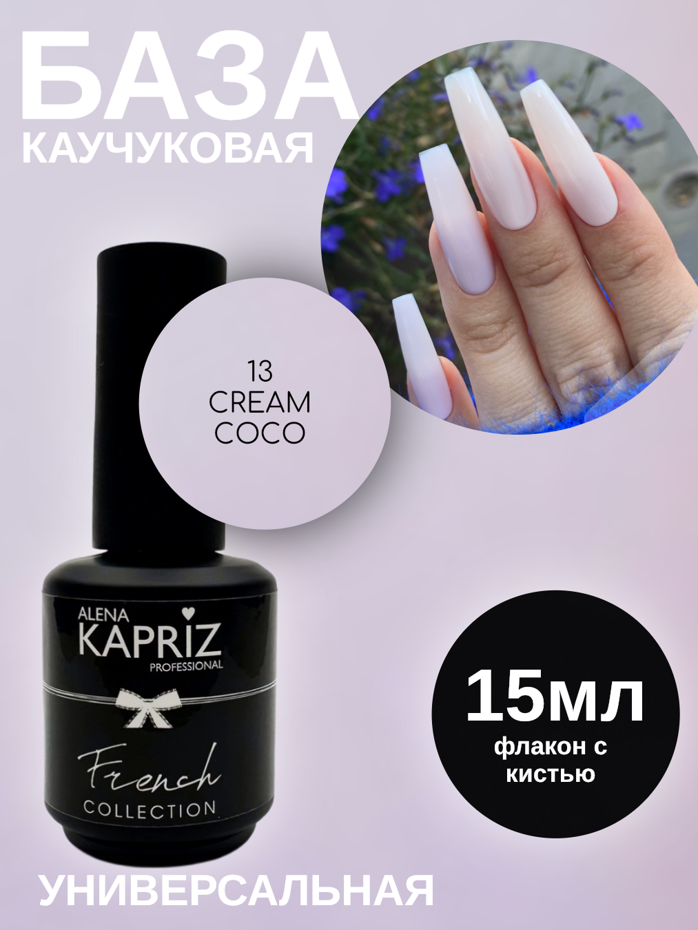 Камуфлирующая база Алёна Каприз- создана для использования в качестве маскирующего неровности цвета ногтя покрытия , а также ,как основа под маникюр с френч дизайном.