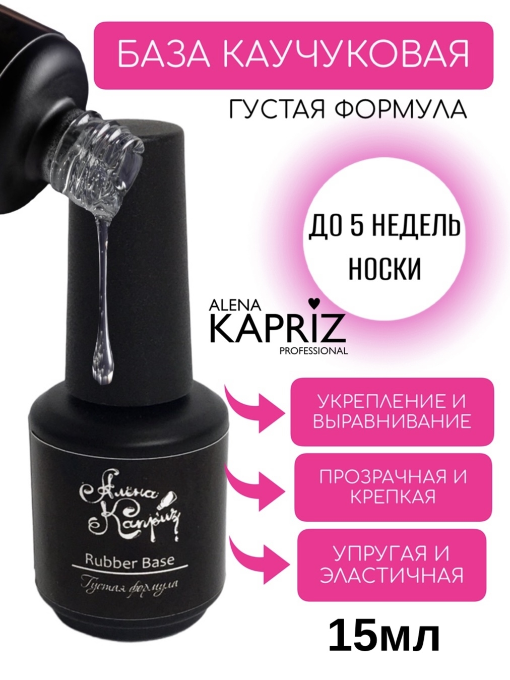 Rubber base-базовое покрытие для гель-лака, защищает ногтевую пластину от сколов и трещин, уменьшает влияние физического и химического воздействия окружающей среды ( бытовая химия,контакт с водой и тд.). Поэтому, каучуковая база особенно актуальна для проблемных и тонких ногтей, склонных к расслоению и ломкости. База способна скрывать все неровности ногтя, работая в технике "выравнивание".