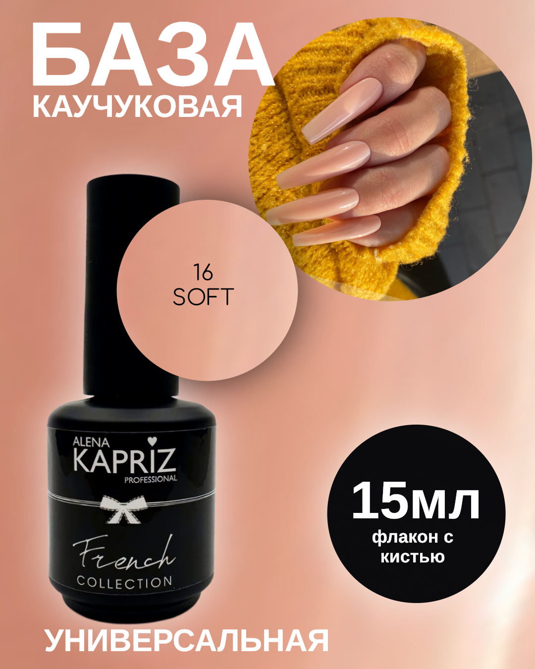 Камуфлирующая база Алёна Каприз- создана для использования в качестве маскирующего неровности цвета ногтя покрытия , а также ,как основа под маникюр с френч дизайном.