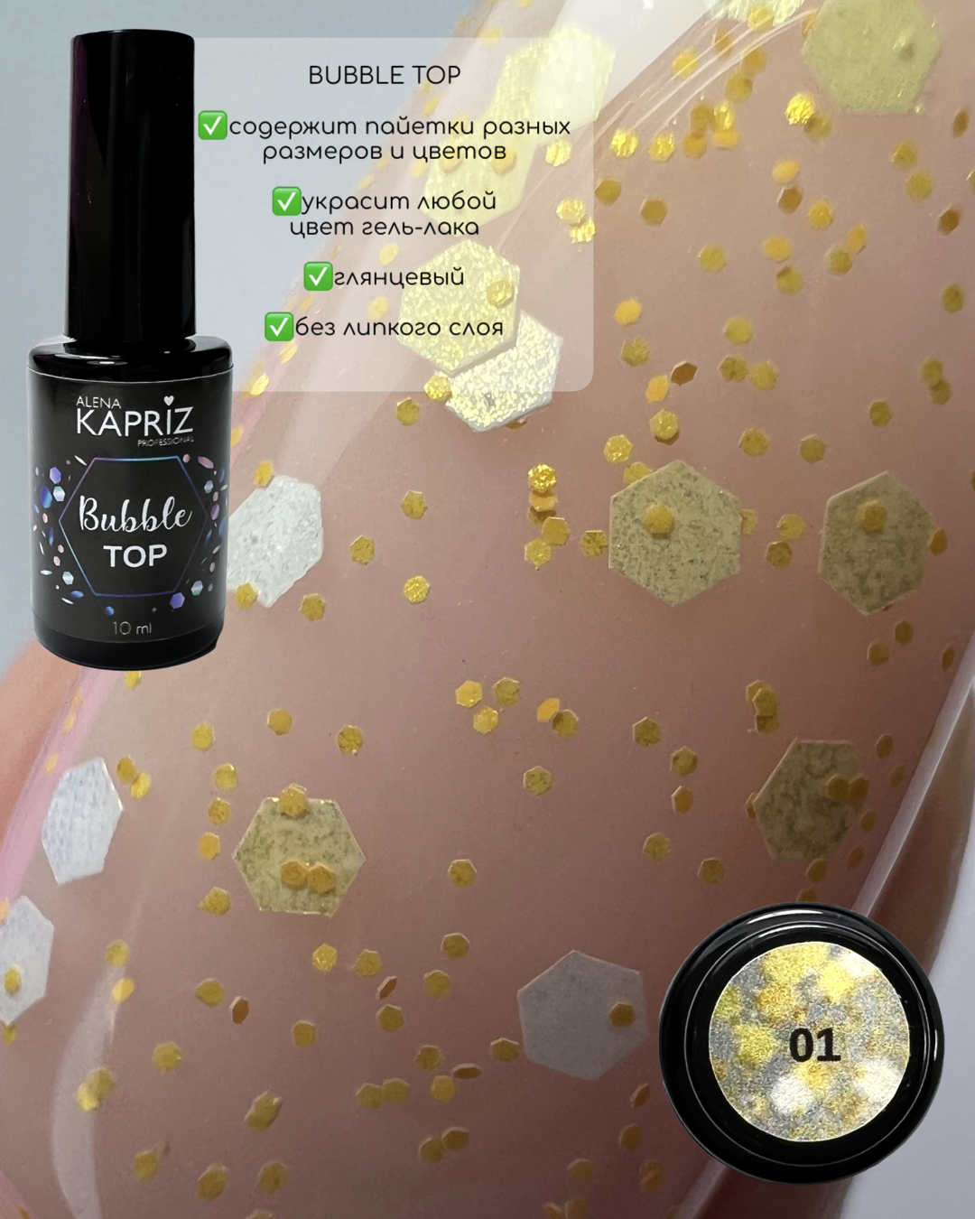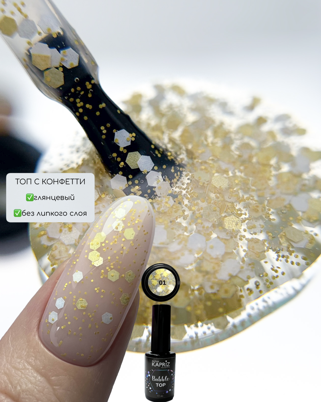 Топ без липкого слоя с цветными вкраплениями. Дизайн и топ в одном движении кисти.