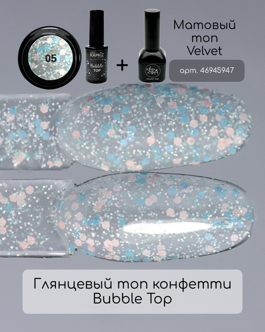 Топ без липкого слоя с цветными вкраплениями. Дизайн и топ в одном движении кисти.