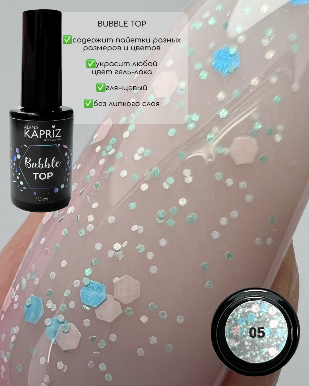 Топ с цветными вкраплениями "BUBBLE TOP" 05 , 10 мл