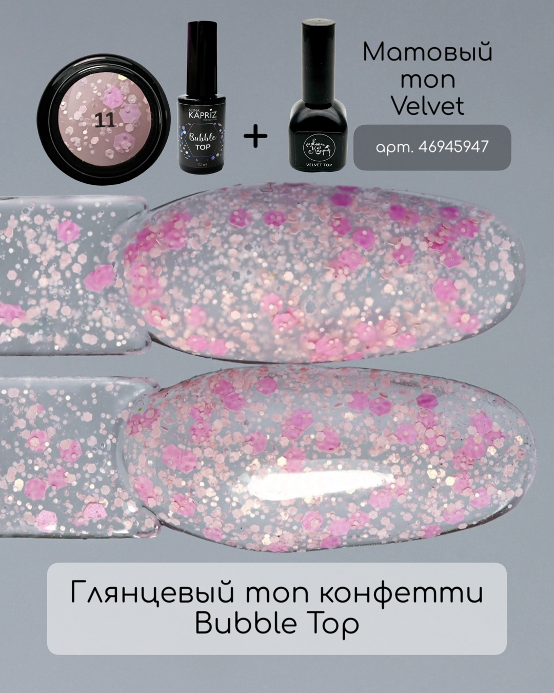 Топ без липкого слоя с цветными вкраплениями. Дизайн и топ в одном движении кисти.