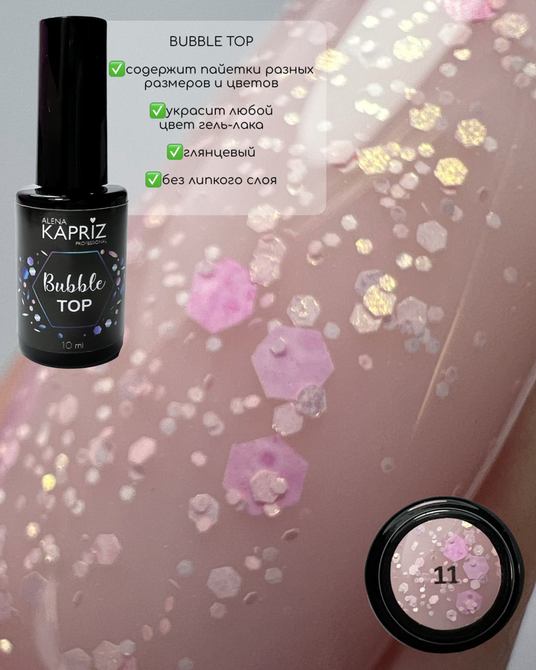 Топ с цветными вкраплениями "BUBBLE TOP" 11 , 10 мл