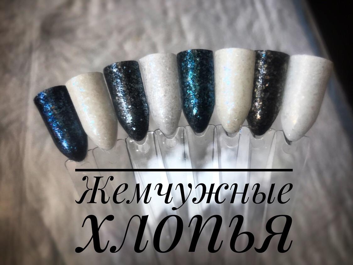 Жемчужные хлопья - это невесомый , воздушный рассыпчатый декор, состоящий из мелких элементов произвольной формы фольгированных частиц однотонного цвета, переливающихся различными оттенками жемчуга. Хлопья настолько тонкие и воздушные, что не будут создавать лишний объем на ногтевой пластине.
