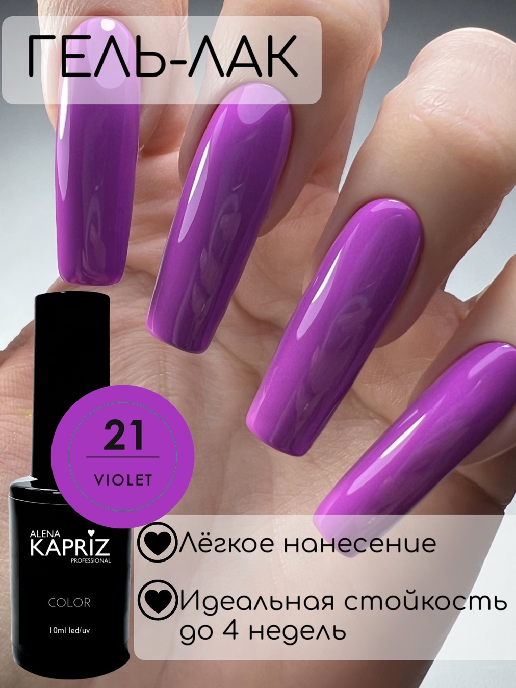 Цветной гель лак Алена Каприз в обьеме 10 мл. Цветное покрытие имеет плотную консистенцию с самовыравнивающейся текстурой .Укрываемость материала в 1-2 слоя .Не растекается и не полосит.Удобнейшая кисть позволит Вам с легкостью нанести гель лак близко к кутикуле.Идеально подходит как для однотонного нанесения,так и градиента .Мягкое растворение при снятии.Время полимеризации LED-1 мин;UV36W-2 мин.