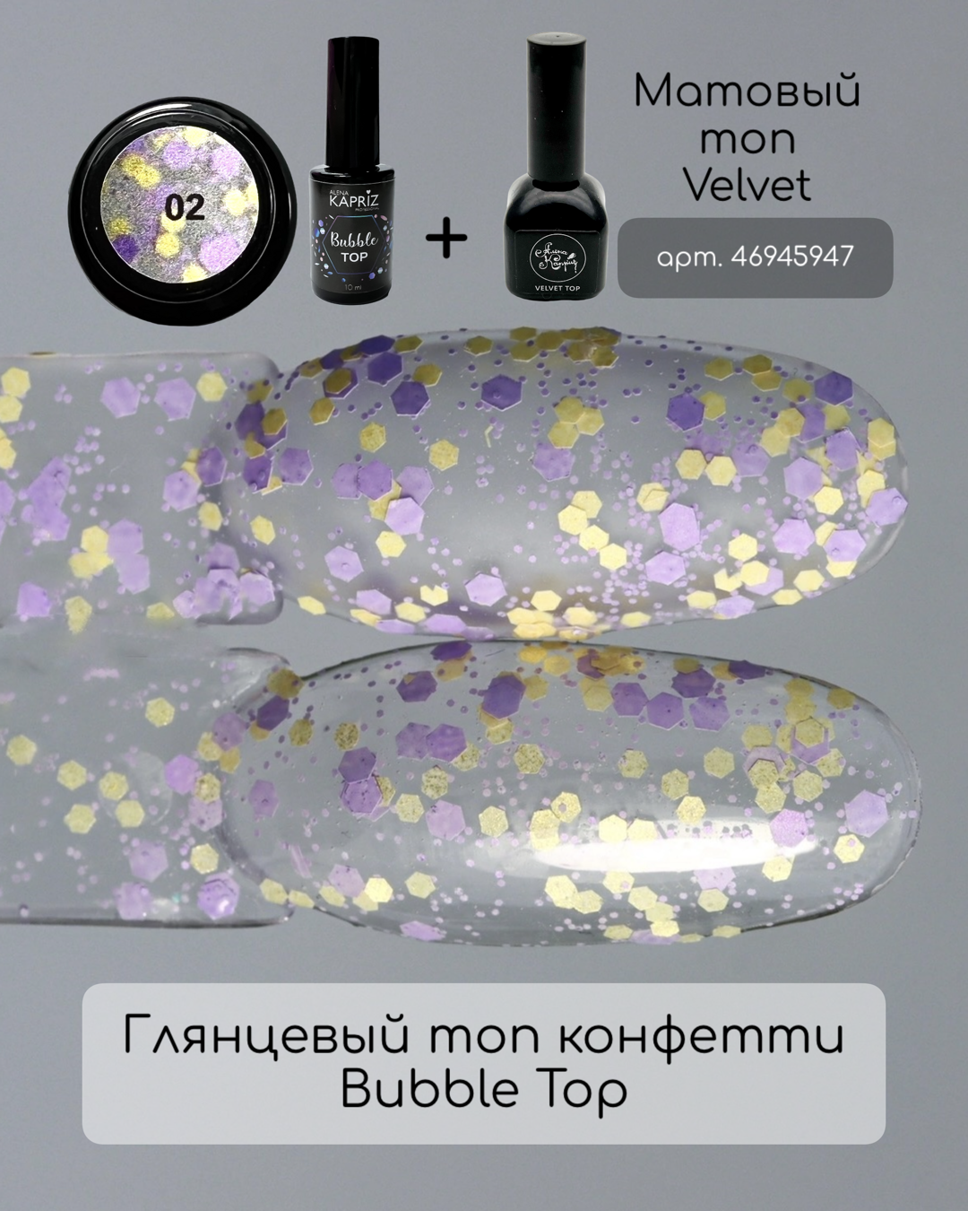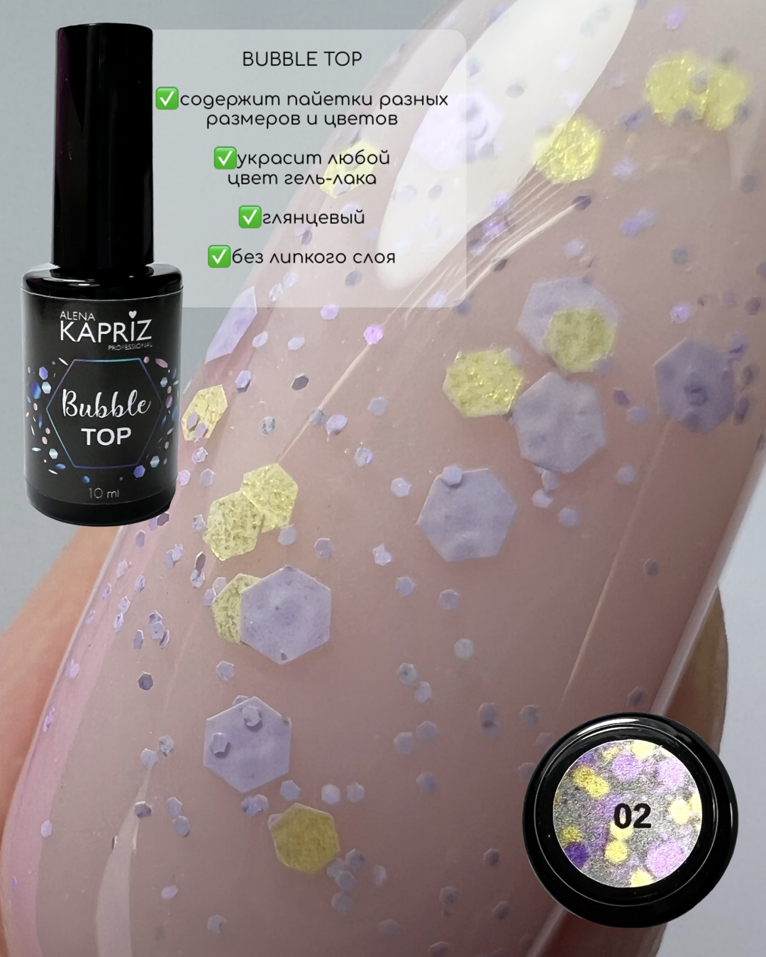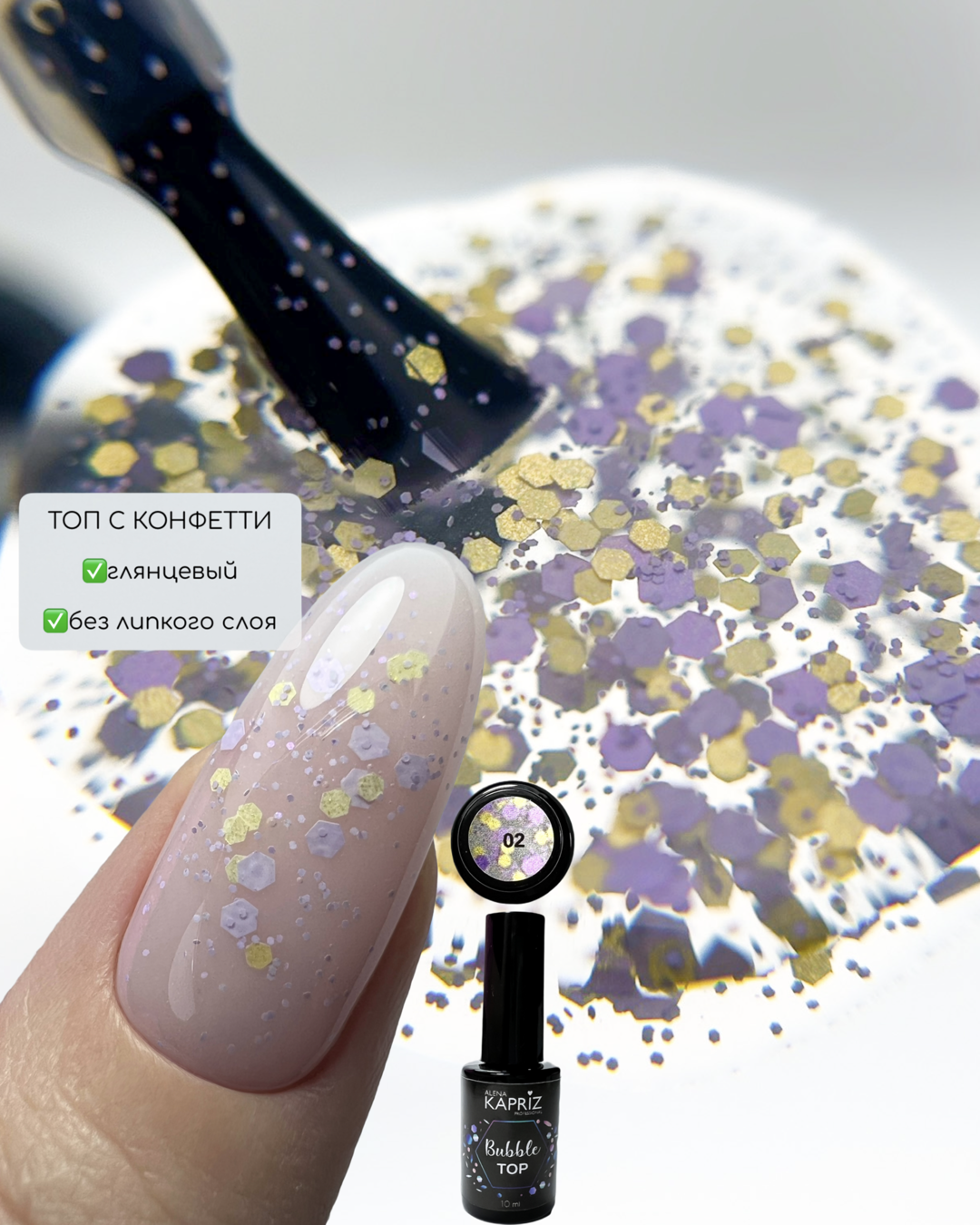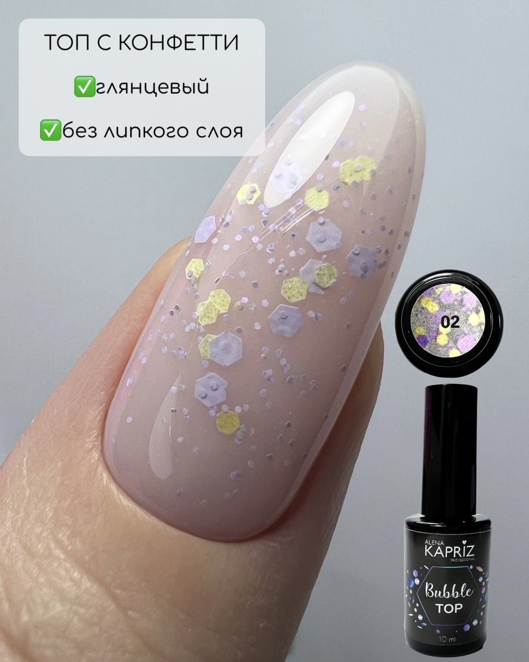 Топ без липкого слоя с цветными вкраплениями. Дизайн и топ в одном движении кисти.