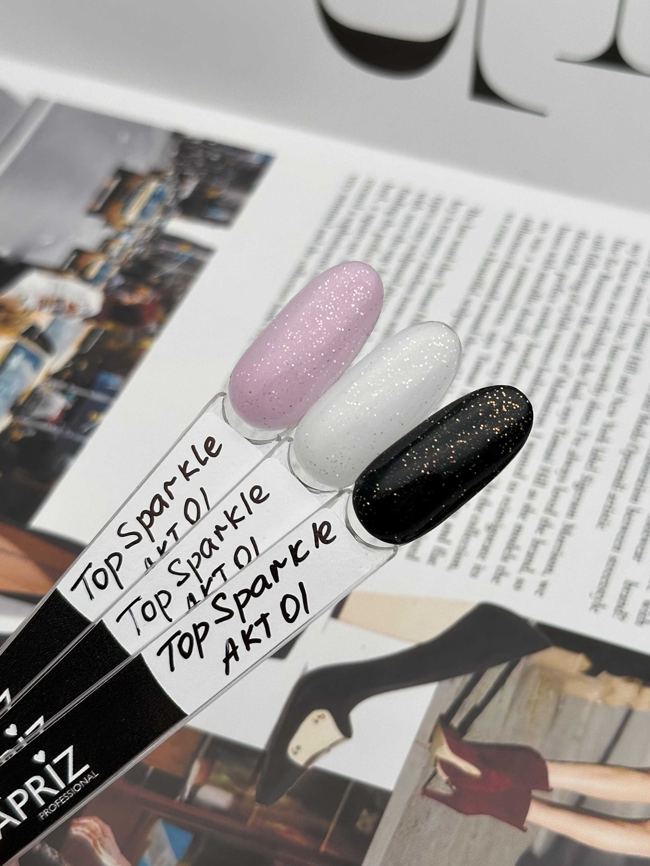 ТОП С БЛЁСТКАМИ. Финишное покрытие без липкого слоя с мерцающим эффектом . Очаровательные мерцающие блёстки , превратят ваши ногти в настоящий художественный шедевр. Топ придаёт не только волшебное сияние, но и защищает ваш маникюр, делая его стойким и безупречным.Время полимеризации в UV36w-2 мин. в LED48w-1 мин.